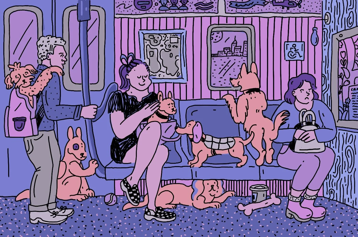 Personal work imagining what the NYC commute will look like when all the pandemic dogs head back to the office.