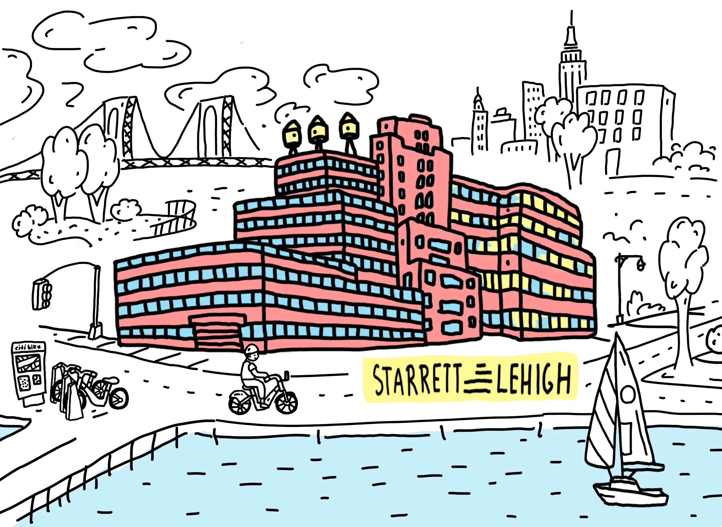 Illustration of Starett-Lehigh Building for promotional materials, including a tote bag. Client: RXR Realty