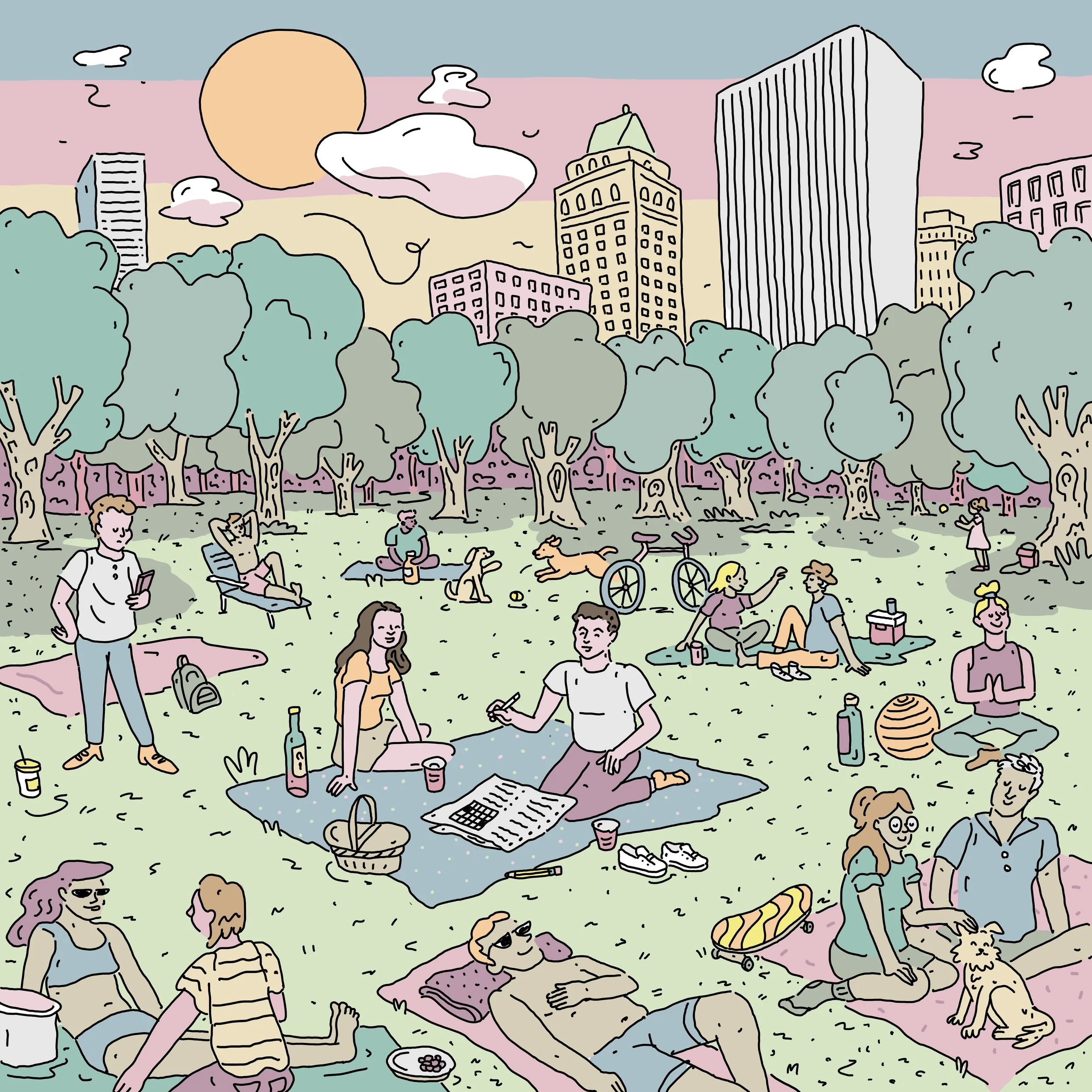 Commission for a couple who loves having picnics in Central Park and doing the crossword puzzle.